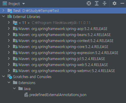 - Spring 관련 Library들이 추가된 것을 확인. 이후 필요한 설정 추가진행