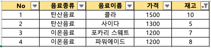 아래와 같은 엑셀이 있다고 가정하고,