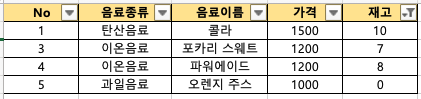 엑셀에서 재고 값을 기준으로 아래와 같이 필터링을 해 볼게요