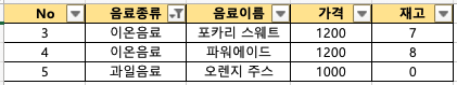 이번에도 마찬가지로 실습된 결과를 비교해보면 필터기능을 사용한 엑셀 결과와 SQL 실행 결과가 같다는 것을 보실 수 있습니다.
