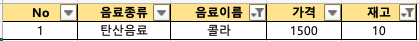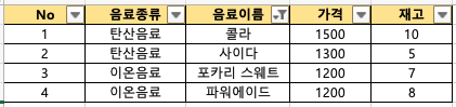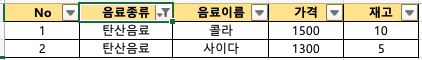 엑셀 예시와 동일하게 아래와 같은 Table 이 있다고 가정하고 WHERE절에 명시해 SELECT문으로 조회해 볼게요