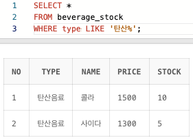 이 포함이란 기능은 SQL에서 LIKE와 와일드카드인 %로 표현됩니다.